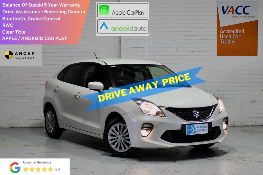 At our VACC-accredited used car dealership, we personally handpick all our vehicles and professionally detail them to ensure they are in immaculate condition inside and out. This 2022 Suzuki Baleno is no exception and has been extremely well looked after, making it the perfect choice for your next car.