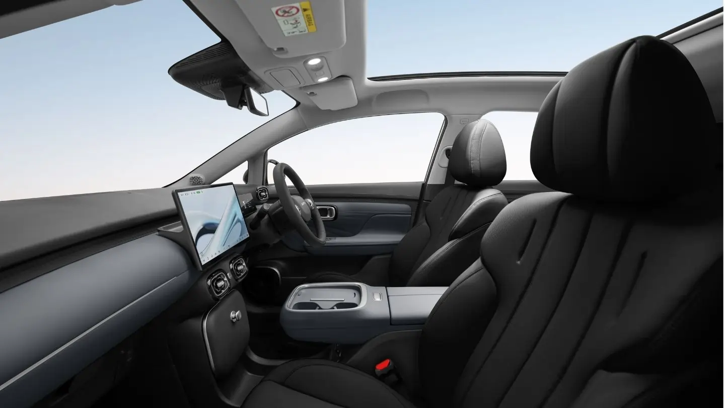 Inside, the GAC Aion UT adopts a minimalist cabin layout, highlighted by a dual-screen setup: