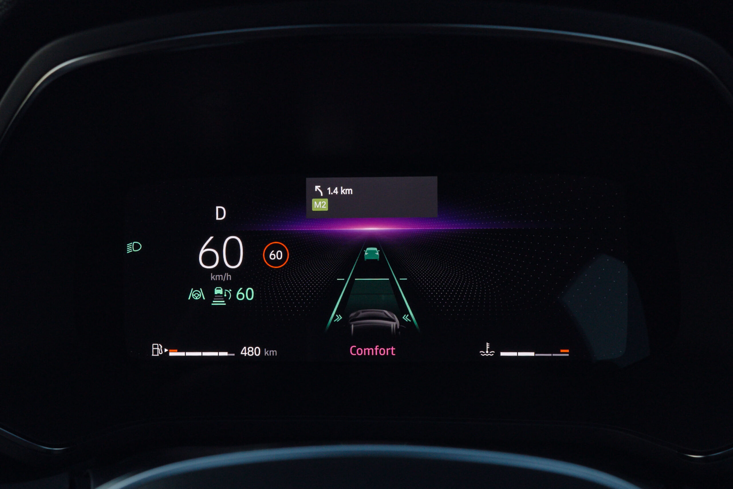 - Mi-Pilot (Semi-autonomous driving: LKA + ACC + TJA) – keeps the vehicle centred in the lane and is capable of fully stopping the vehicle