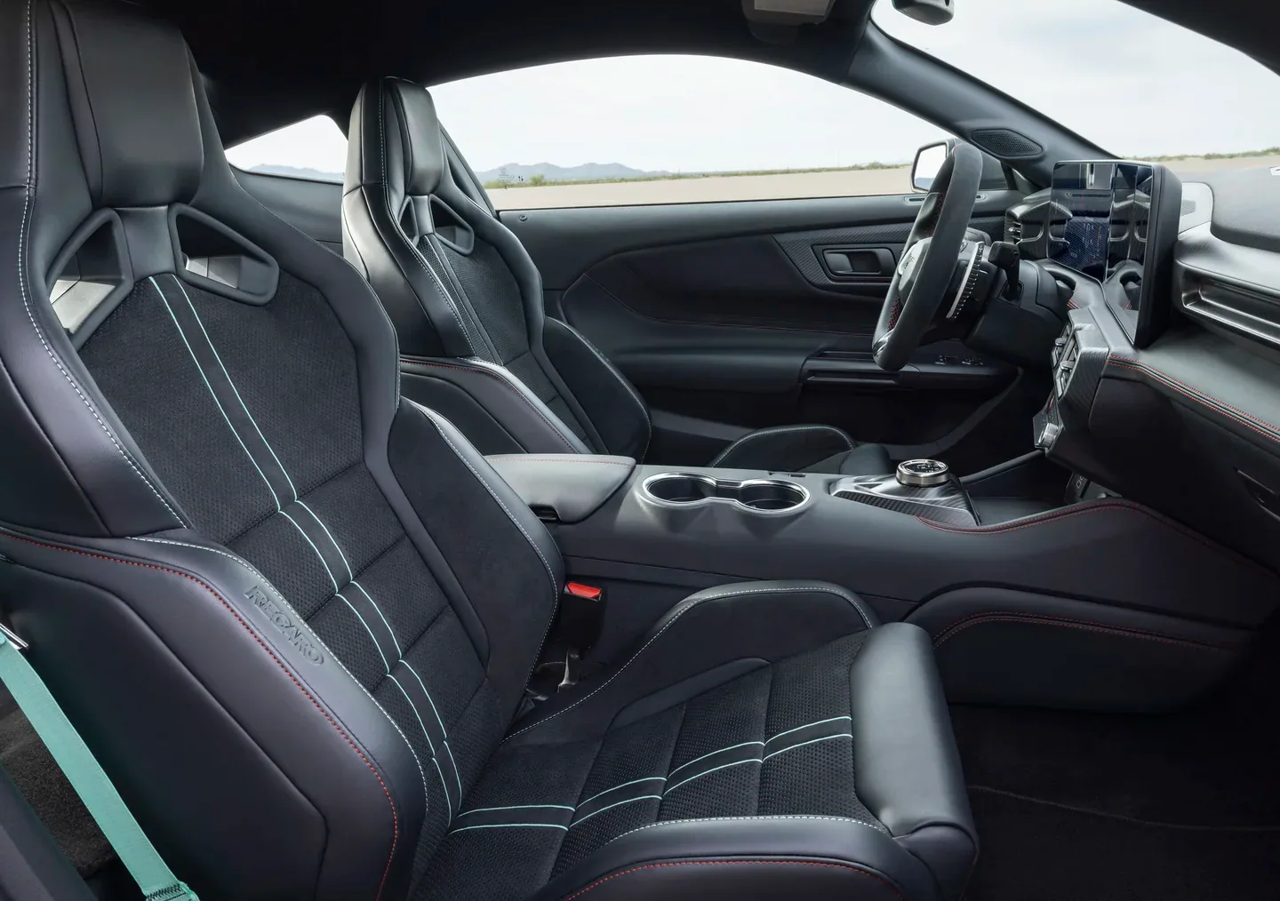 The Dark Horse SC has been engineered alongside the GTD and Mustang GT3 race car, with much of its hardware borrowed directly from those programs. A 7-speed transmission is standard, paired with the GTD’s Variable Traction Control system, allowing drivers to choose from five levels of electronic stability intervention, including a fully deactivated mode.